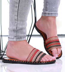 Płaskie klapki damskie z azteckim wzorem Black /B4-2 16354 G079/