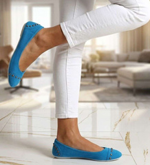 Materiałowe niebieskie baleriny jak tenisówki /D7-1 14388 T046/