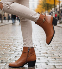 Krótkie czekoladowe kozaki boho na obcasie /B7-1 18580 G688/