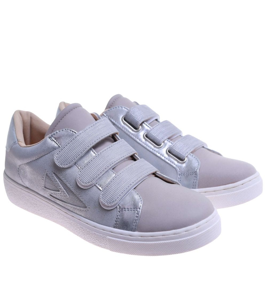 8. Srebrne trampki na rzepy – wygoda z błyskiem