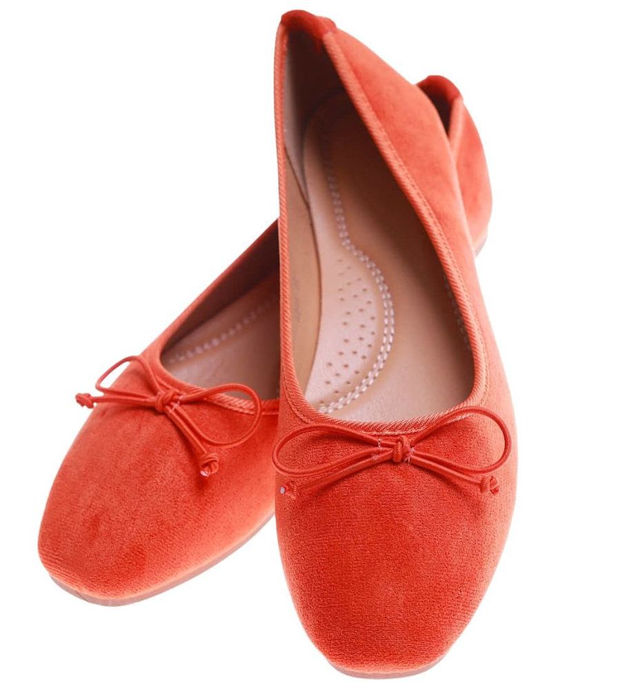 7. Pomarańczowe baleriny z kokardą – odważny akcent w wiosennym wydaniu