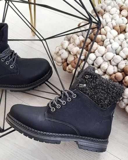 Czarne ocieplane botki workery sznurowane /A10-118576 W386/