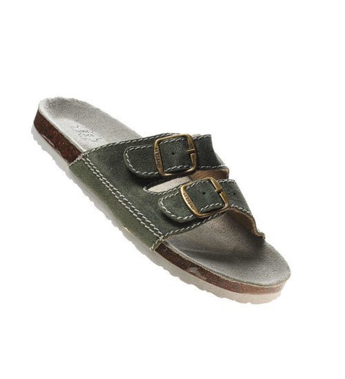 Damskie botki na stabilnym obcasie Khaki /J5-2 12419 S281/