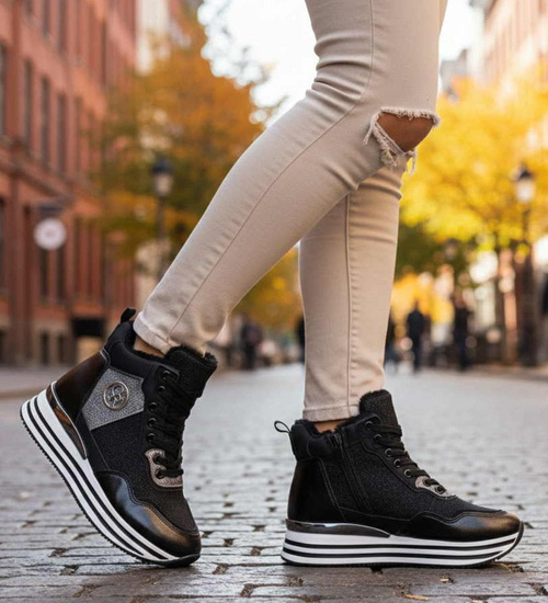 Czarne botki sztyblety na platformie /A8-3 17034 T418/