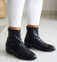 Czarne botki saszki na płaskim obcasie /E7-3 16868 T107/