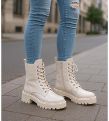 Białe wysokie botki sztyblety na platformie /D9-1 18217 T212/