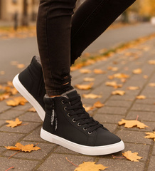Czarne damskie botki z wycięciami /G13-3 13400 T198/