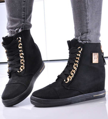 Czarne sneakersy damskie na koturnie /A9-3 12766 T596/