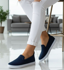 Wsuwane granatowe damskie trampki slip on /G3-2 8086 S196/