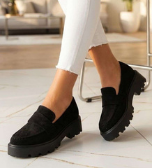 Wsuwane czarne półbuty damskie na platformie /G11-2 14650 T640/
