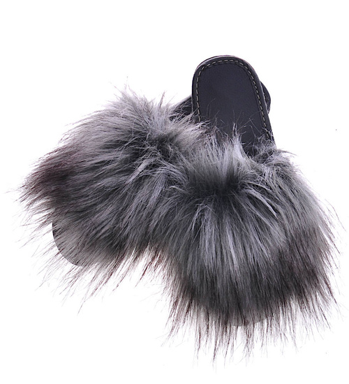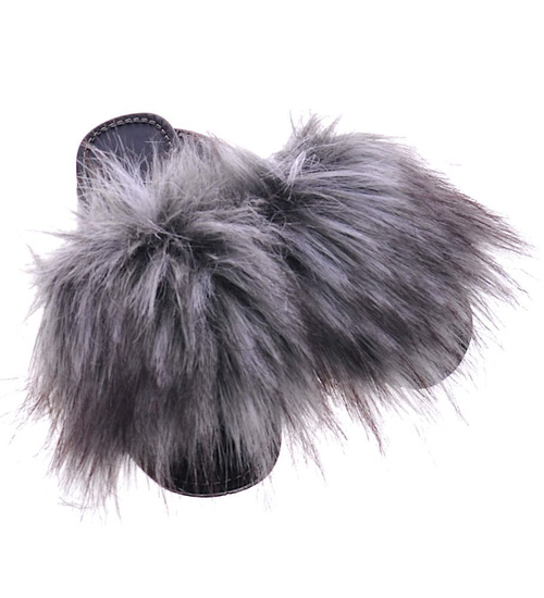 Szare klapki z efektownym futerkiem /F3-1 3259 S197/