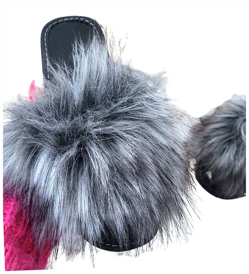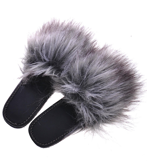 - Design: Obfite, miękkie futerko w "podpalanym" szarym kolorze nadaje klapkom elegancki i przyciągający wzrok wygląd.
