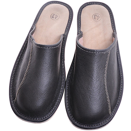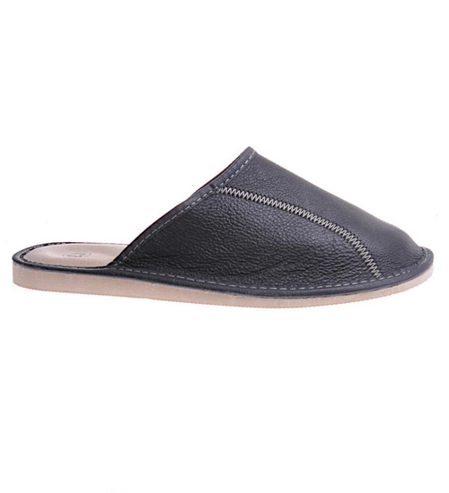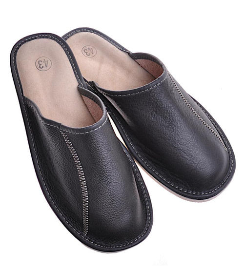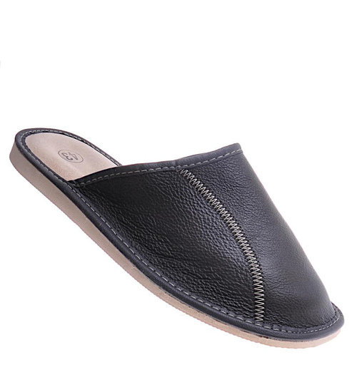 Skórzane męskie kapcie czarne /E9-1 10863 S196/