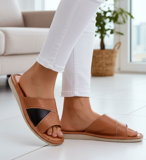 Brązowe klapki domowe ze skóry naturalnej i ekologicznej – komfort i styl na co dzień