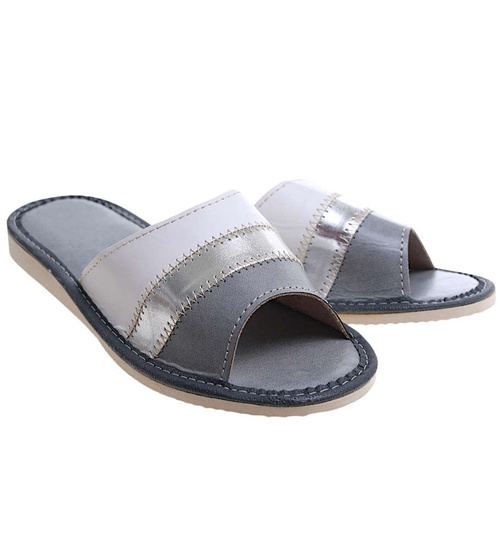 Odkryj wygodne i niezwykle lekkie klapki domowe, które dzięki połączeniu najwyższej jakości skóry naturalnej oraz materiału skóropodobnego gwarantują komfort wypoczynku na co dzień.