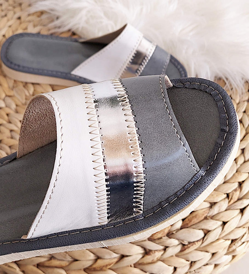 Szaro białe kapcie klapki domowe /A3-1 10933 S194/