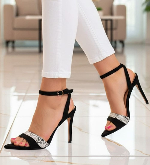 Czarne damskie sandały na szpilce /G8-2 12103 T131/