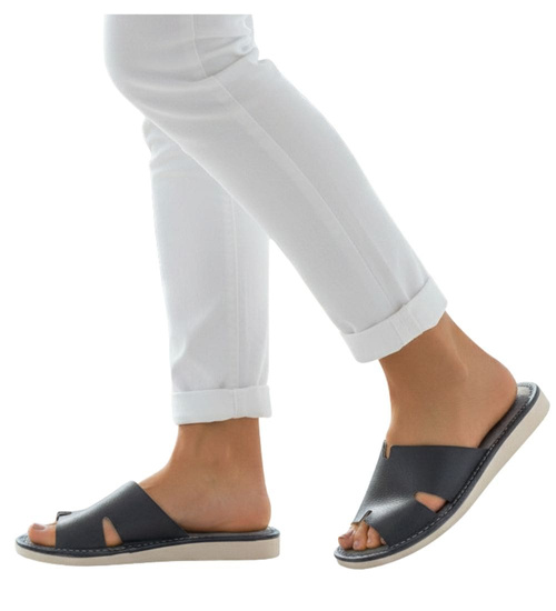 Z początku klapki wydawały się zbyt wąskie na moją stopę, ale na szczęście skóra ma to do siebie, że się rozciąga. Są bardzo wygodne, idealne do domu. Jedynym minusem jest piankowa podeszwa, która jest dość śliska, szczególnie przy chodzeniu po płytkach.