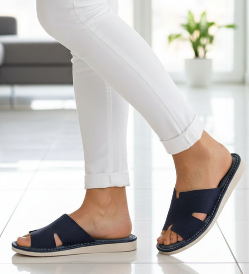 Skórzane domowe klapki kapcie granatowe /E8-1 13381 S194/