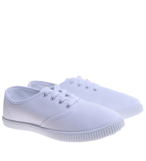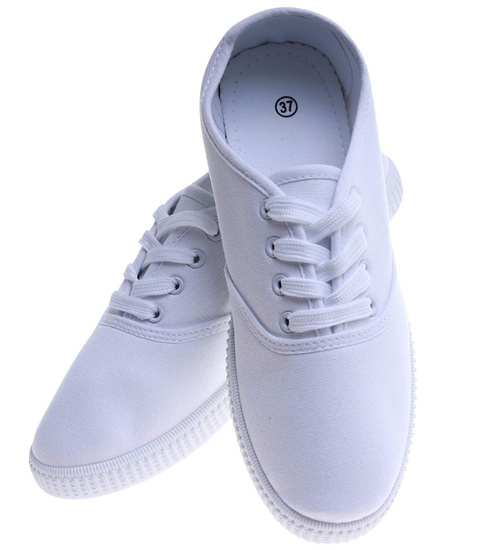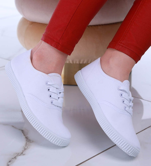Sznurowane białe tenisówki damskie /G12-313389 T232/