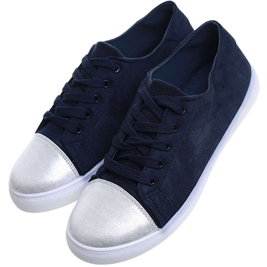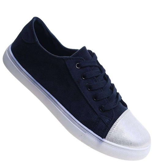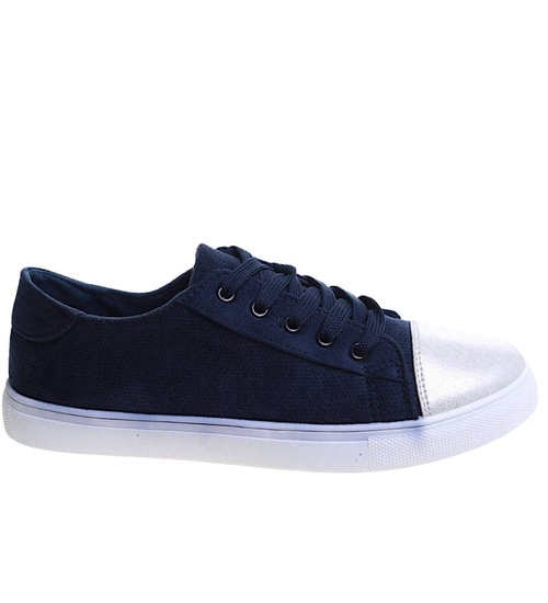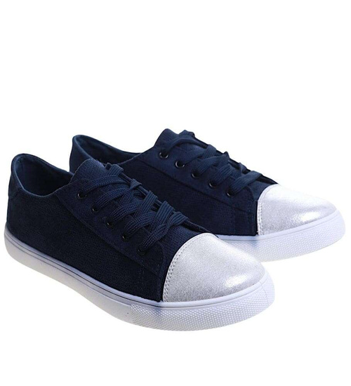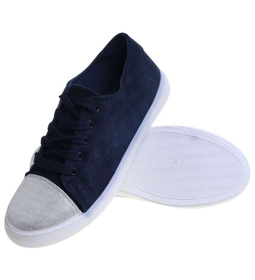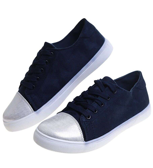 Sznurowane granatowe trampki damskie /E7-2 13617 S171/