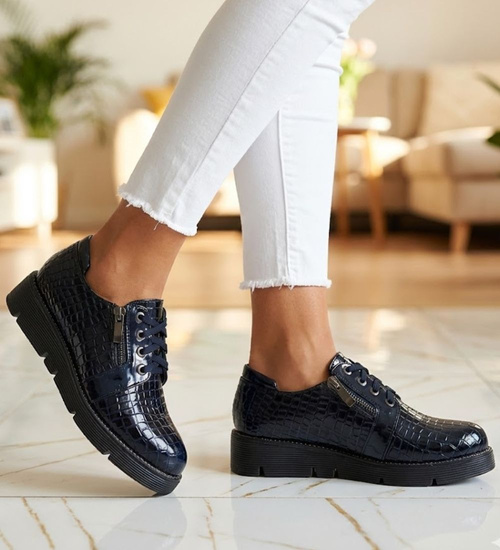 - Granatowe półbuty sznurowane to praktyczna i modna propozycja na sezon wiosenny.