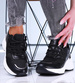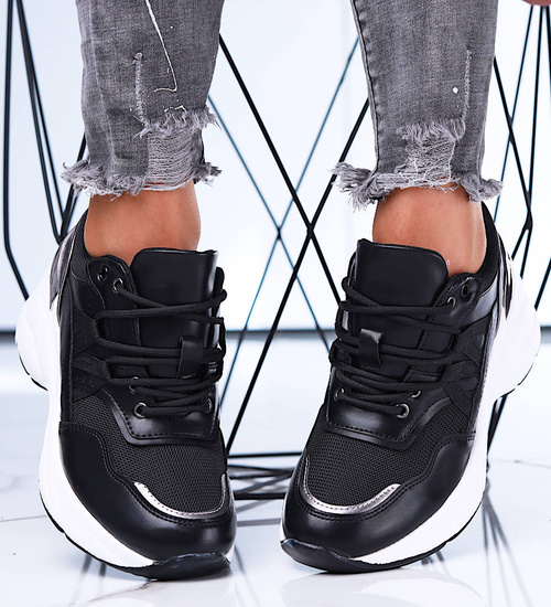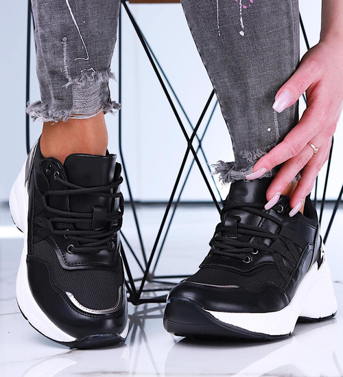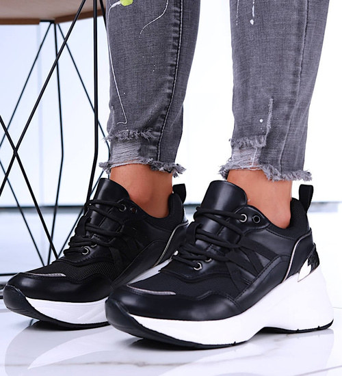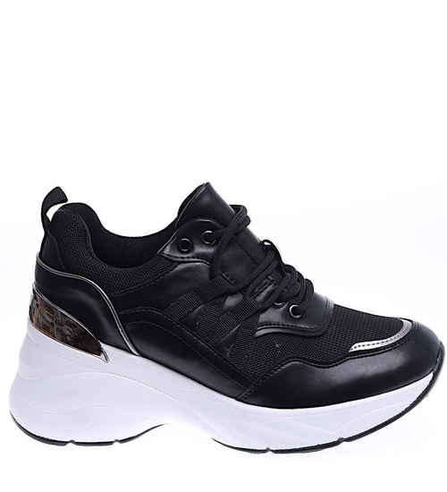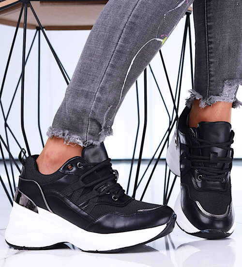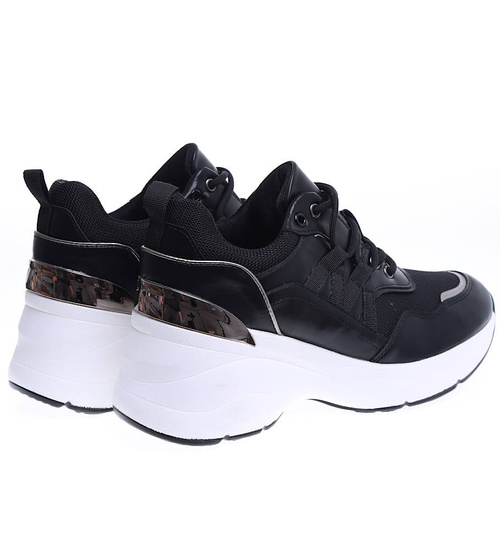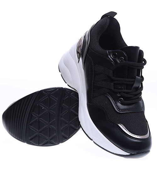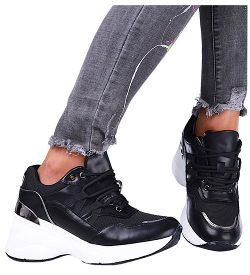 Sznurowane czarne sneakersy na niskim koturnie /A5-3 15717 T358/