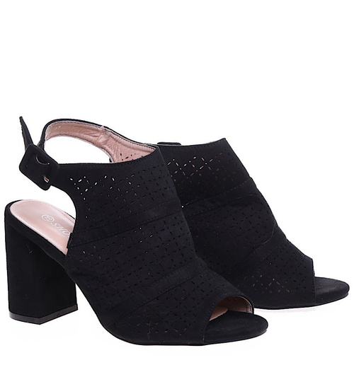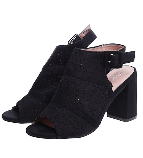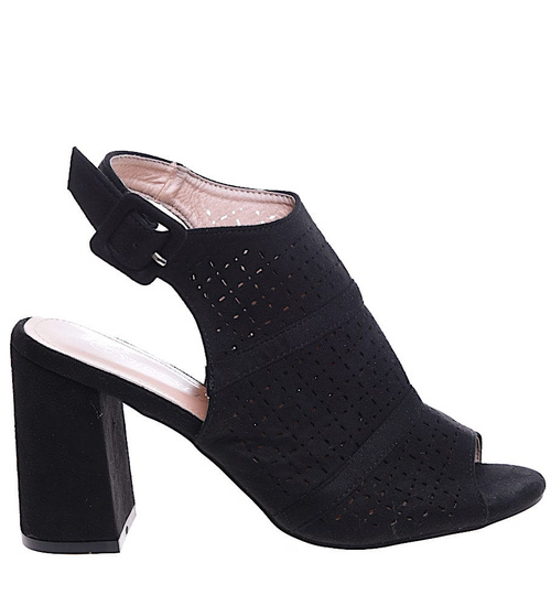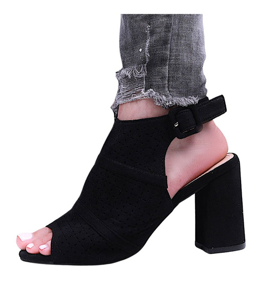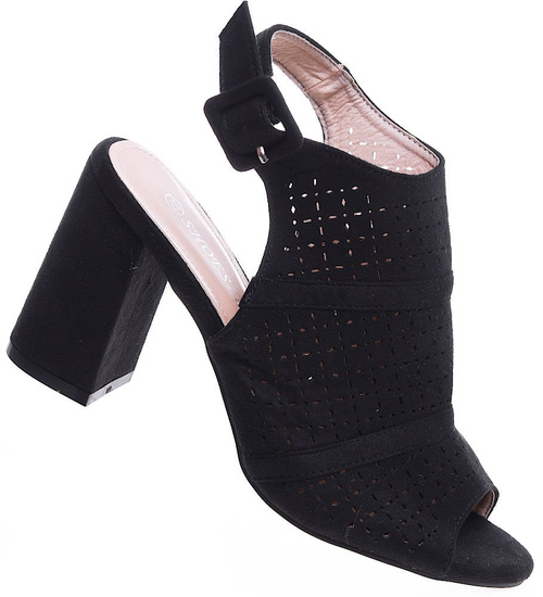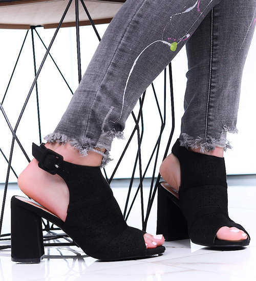 Czarne damskie sandały na obcasie /E7-1 15933 T380/