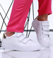 - Białe damskie tenisówki z złotymi dodatkami, łączą doskonałą równowagę między stylem a komfortem.
