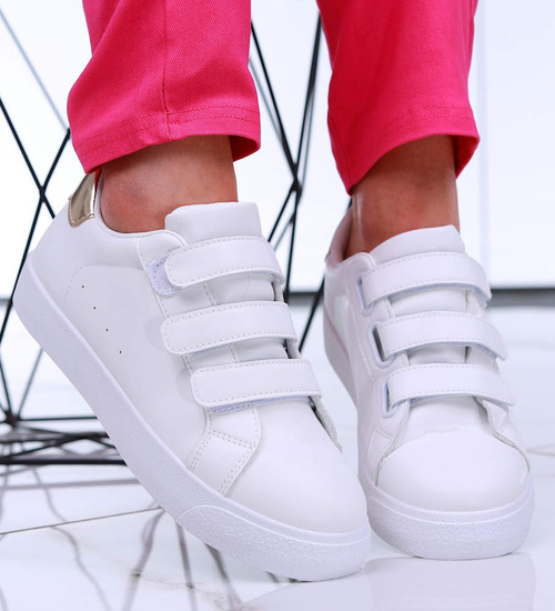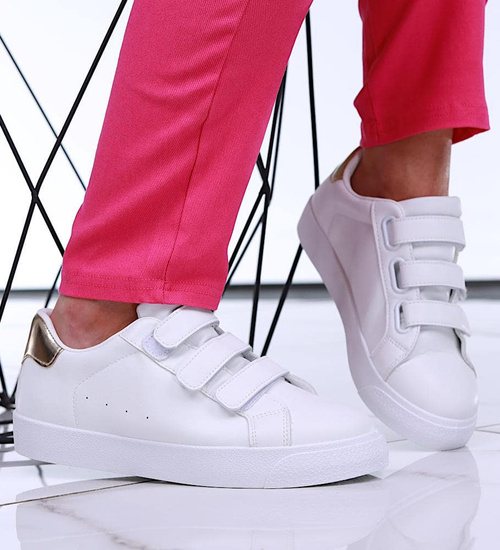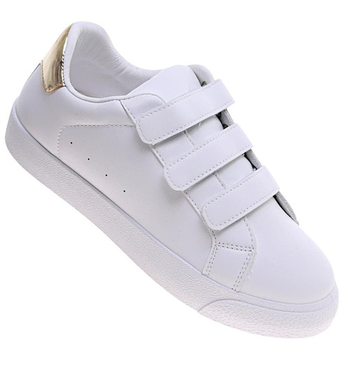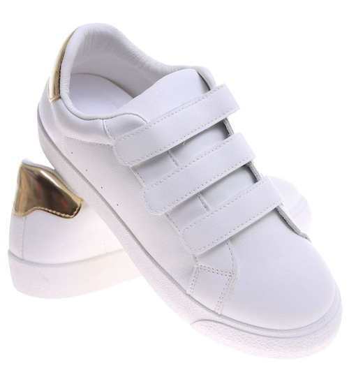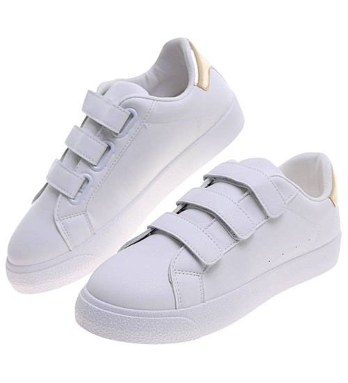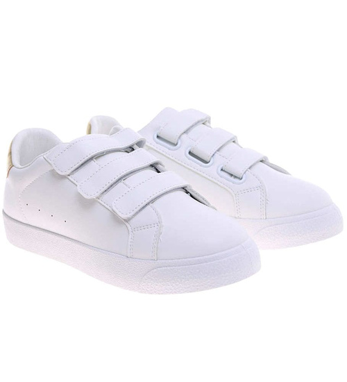 Białe damskie trampki na rzepy /A6-1 16244 G233/