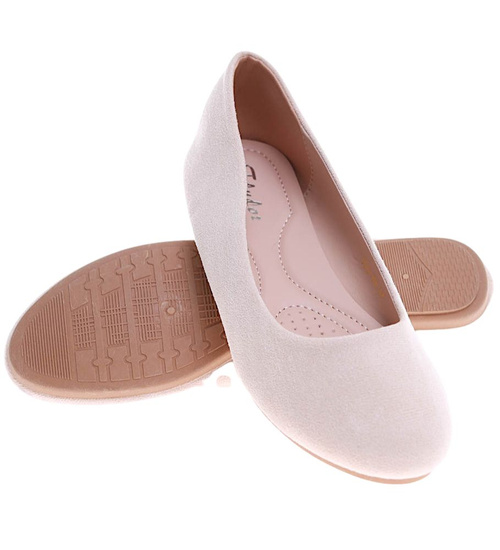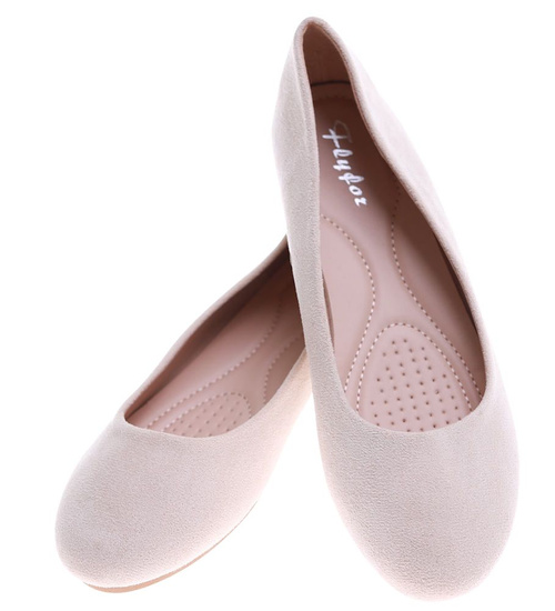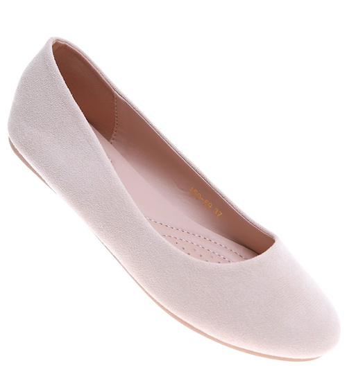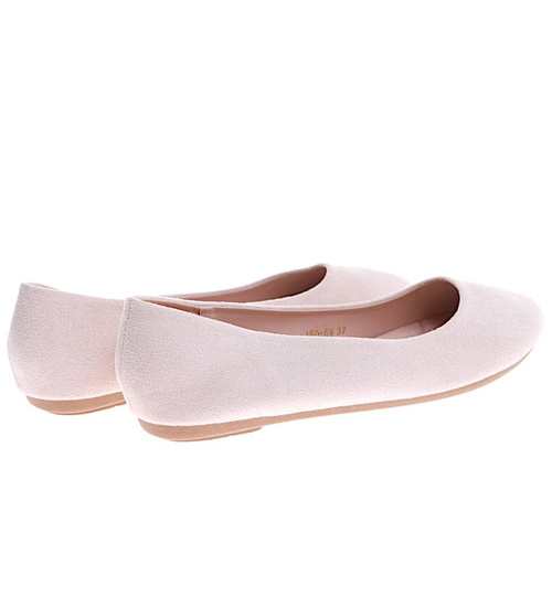 Gładkie beżowe zamszowe baleriny /E2-3 16238 G079/
