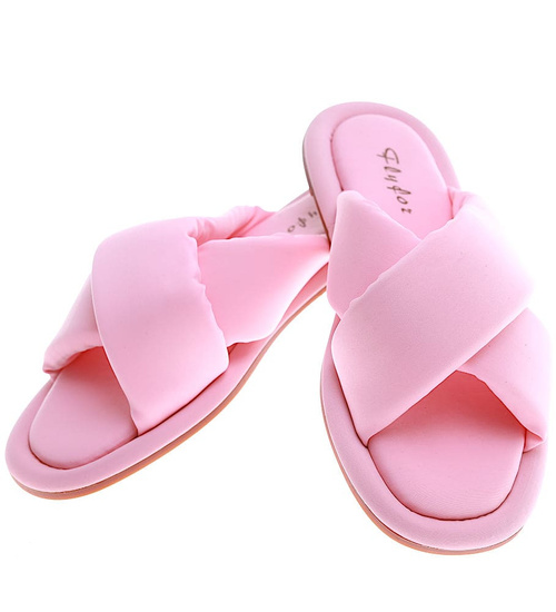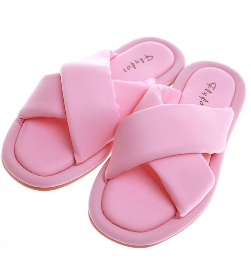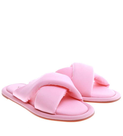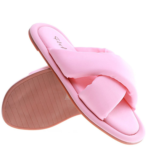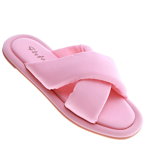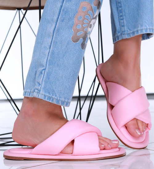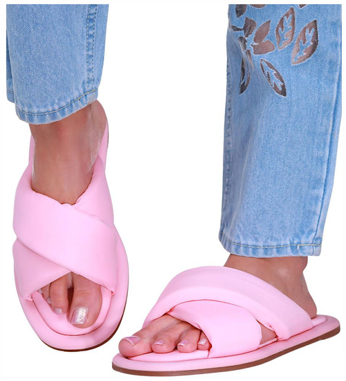 Różowe klapki damskie na płaskim obcasie /F3-2 16131 G132/