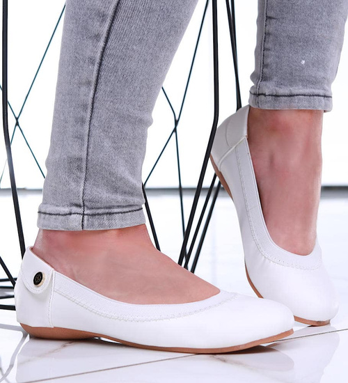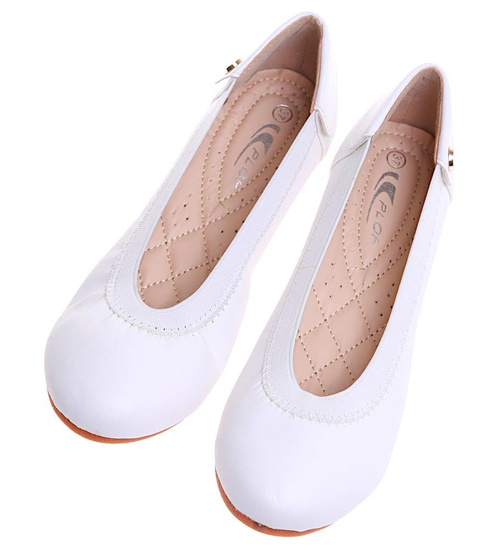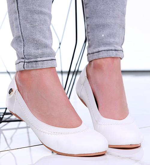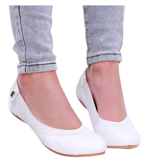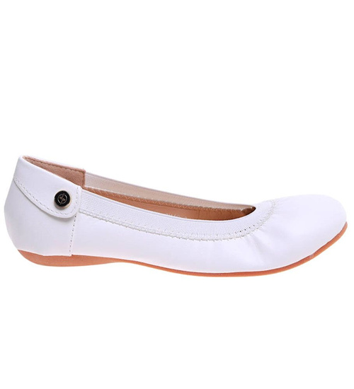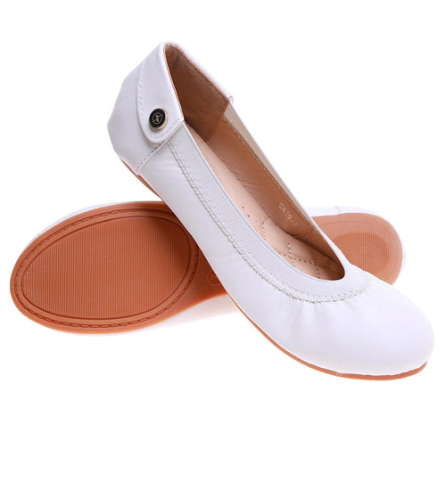 Białe elastyczne baleriny damskie /A8-3 16268 T192/