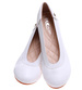 - Wykonane z miękkiego materiału skóropodobnego w kolorze białym, te balerinki są gładkie i eleganckie.