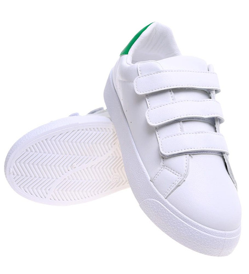Biało zielone damskie trampki na rzepy /f10-3 16247 G233/