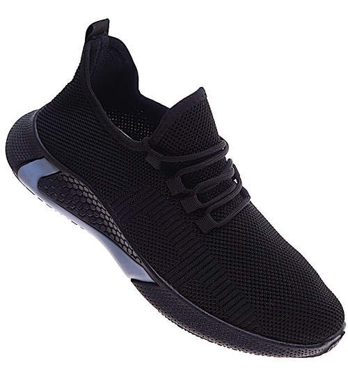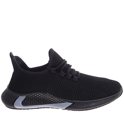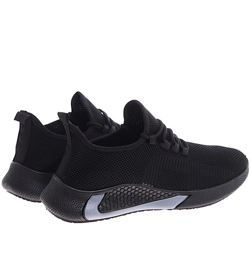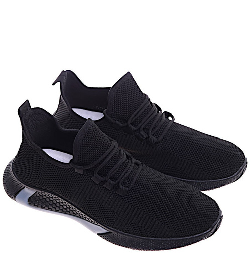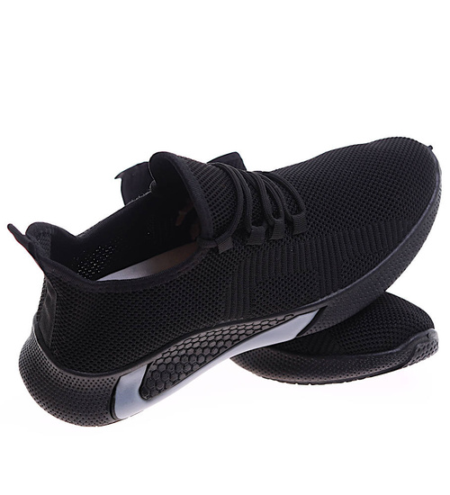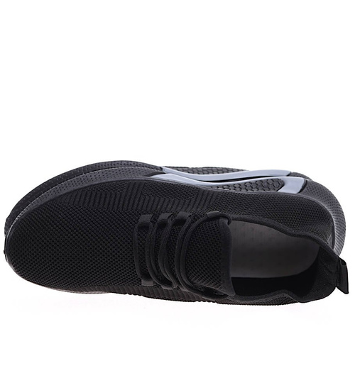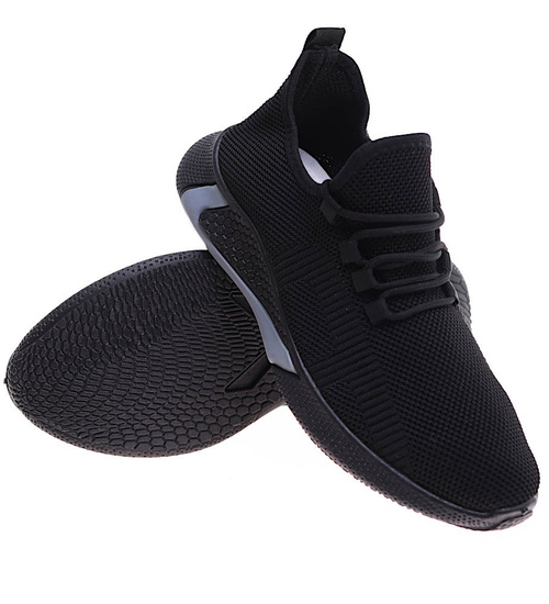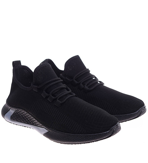 - Komfortowe męskie buty sportowe wykonane z elastycznego, miękkiego materiału w czarnym kolorze.