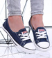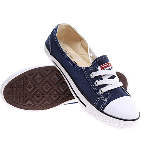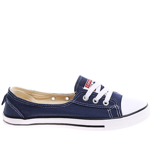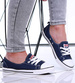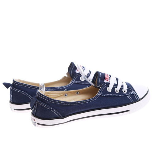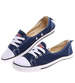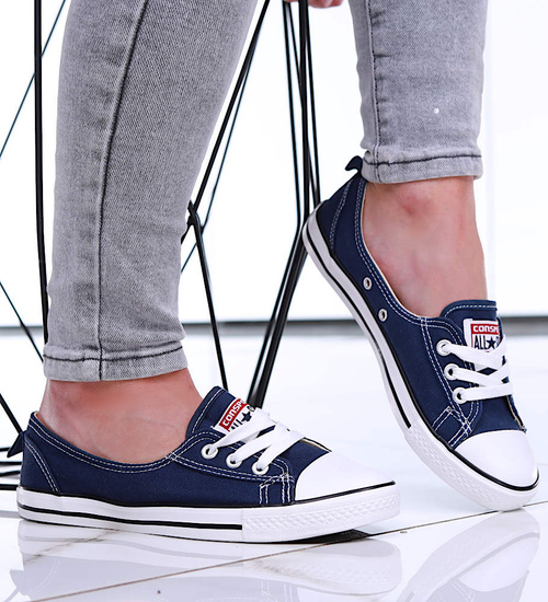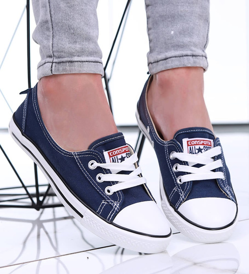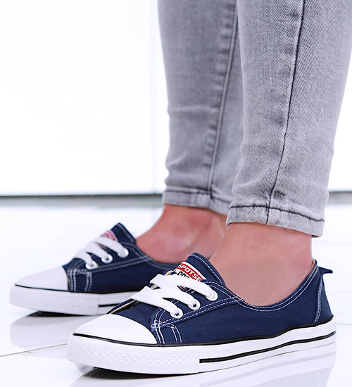 - Granatowe sznurowane trampki damskie wykonane z miękkiego materiału.