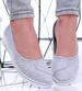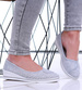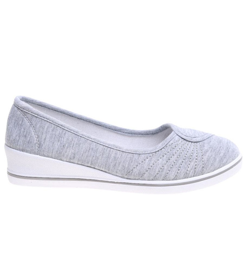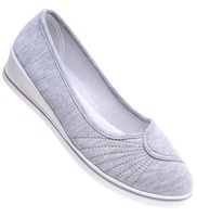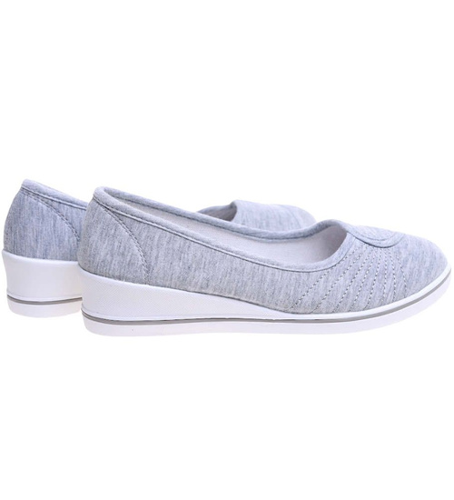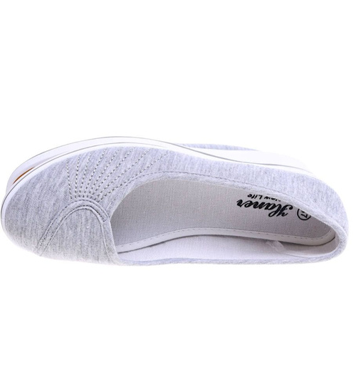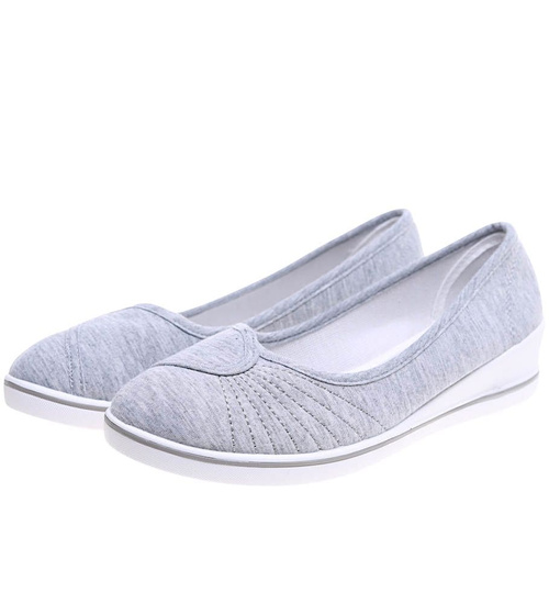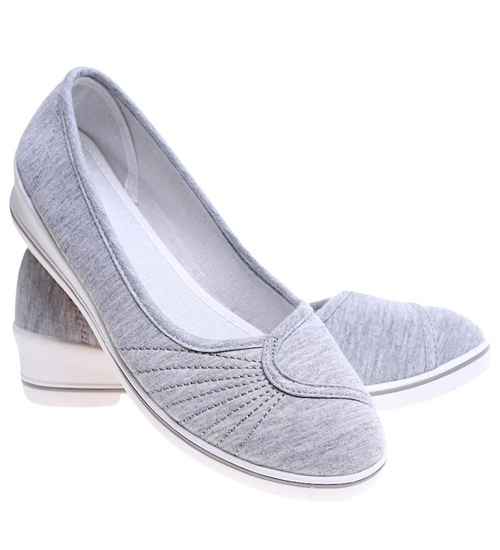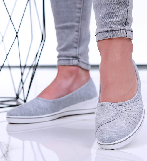 - Wsuwane tenisówki damskie wykonane z delikatnej tkaniny w szarym kolorze.