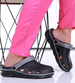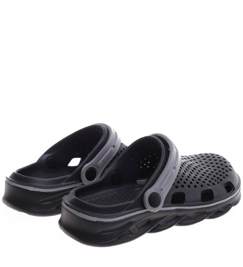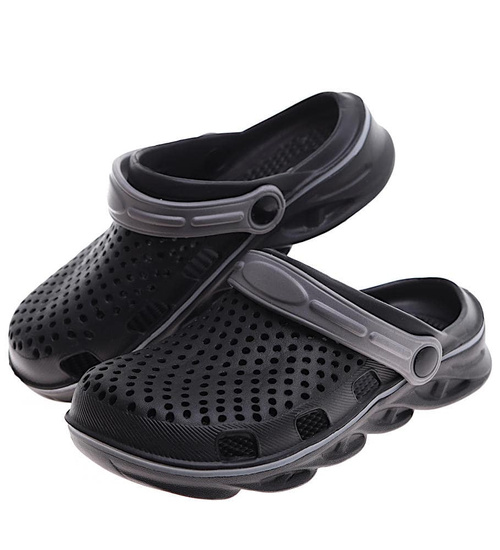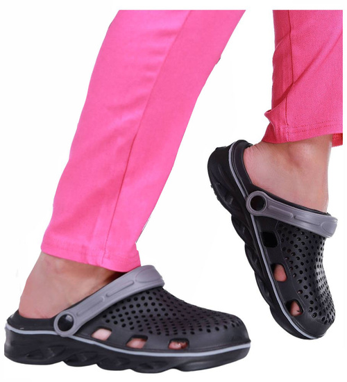 - Kryte klapki damskie wykonane z lekkiego, gumowo piankowego materiał w czarnym kolorze.