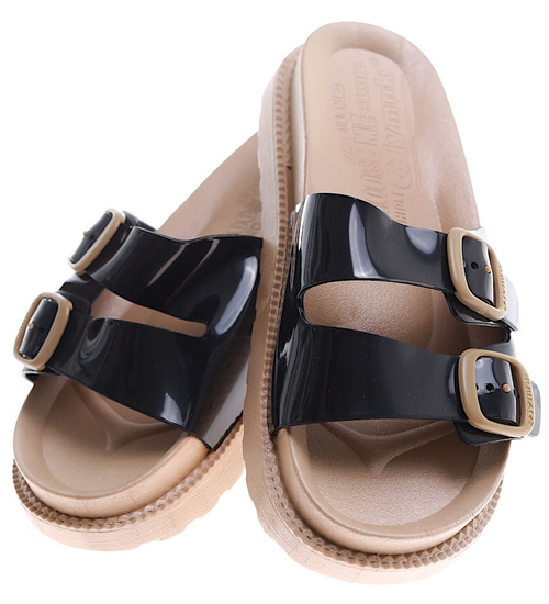 Czarne klapki damskie na platformie /H2 16272 T089/