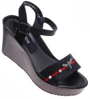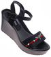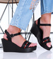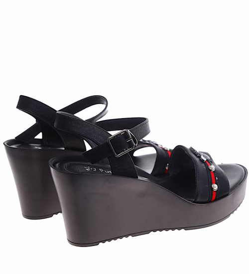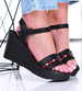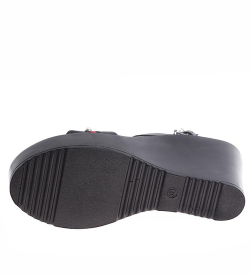 Czarne damskie sandały na koturnie i platformie /E6-2 16295 T293/