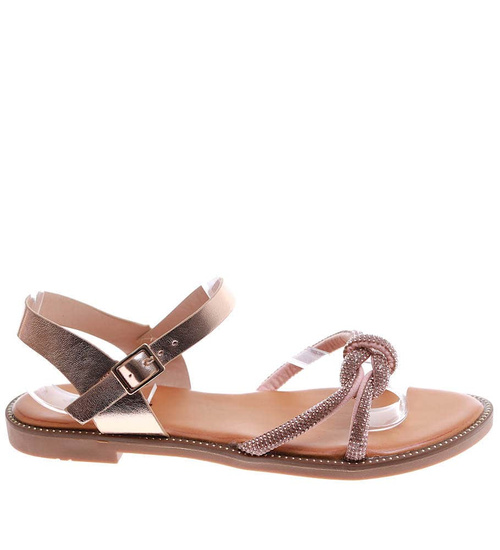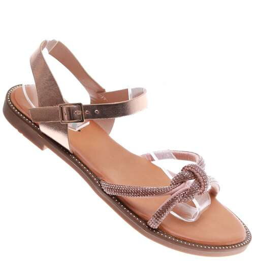• Letnie damskie sandały w różowo złotym kolorze- wygodne buty do stylówek codziennych oraz tych o bardziej formalnym charakterze.