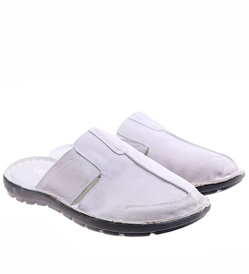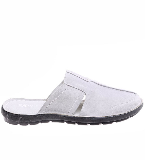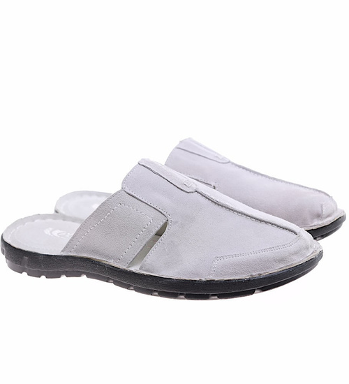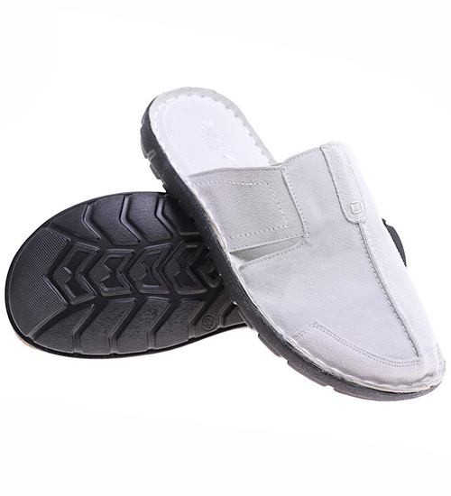 Zamszowe szare klapki męskie z krytymi noskami /F1-3 16359 T136/