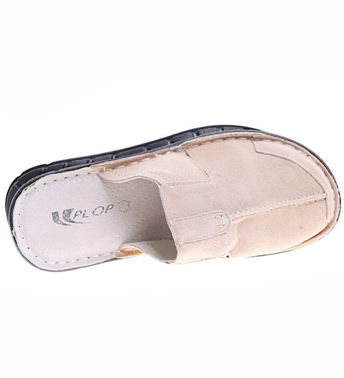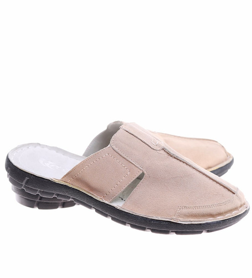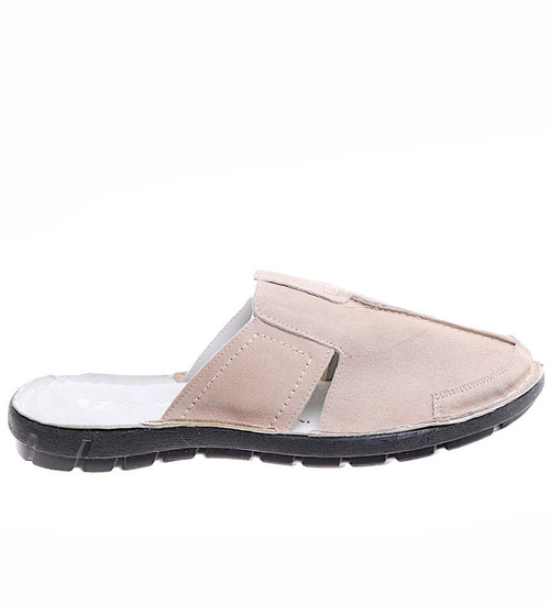 Zamszowe beżowe klapki męskie z krytymi noskami /E2-3 16360 T136/