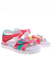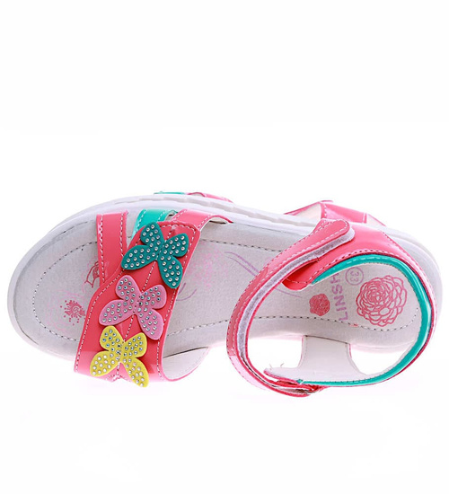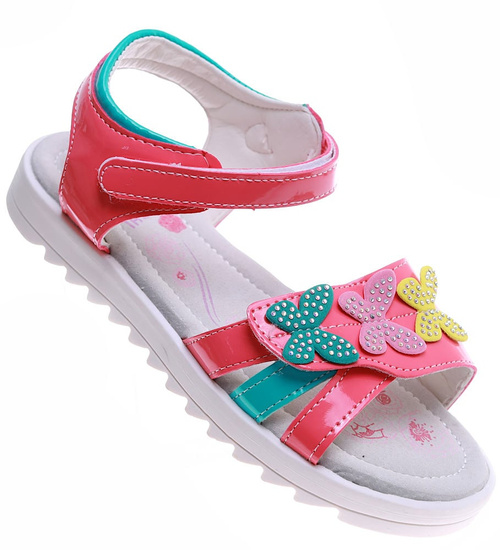 - Dziewczęce sandałki wykonane z materiału skóropodobnego w czerwonym kolorze.