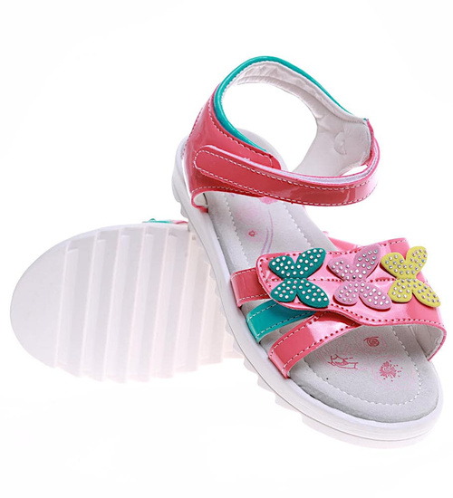Czerwone sandały dziewczęce na rzepy z kwiatami /G9-2 16386 T283/