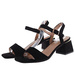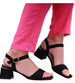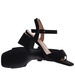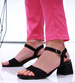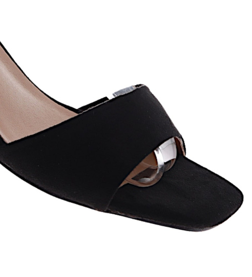 - Czarne sandały damskie wykonane z eleganckiego materiału zamszopodobnego to połączenie stylu i wygody.