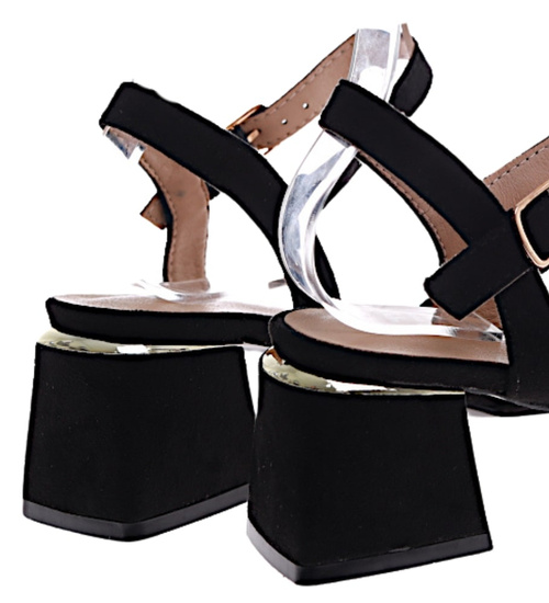 Czarne sandały damskie na klocku /C7-2 16407 G380/