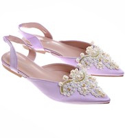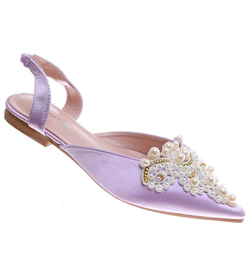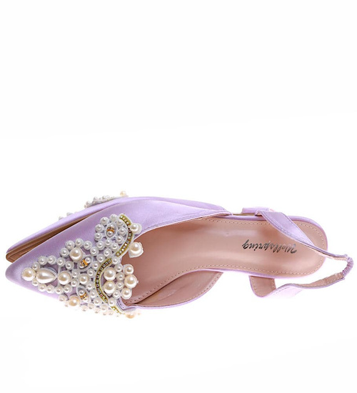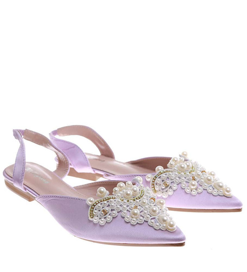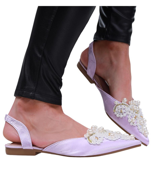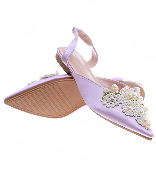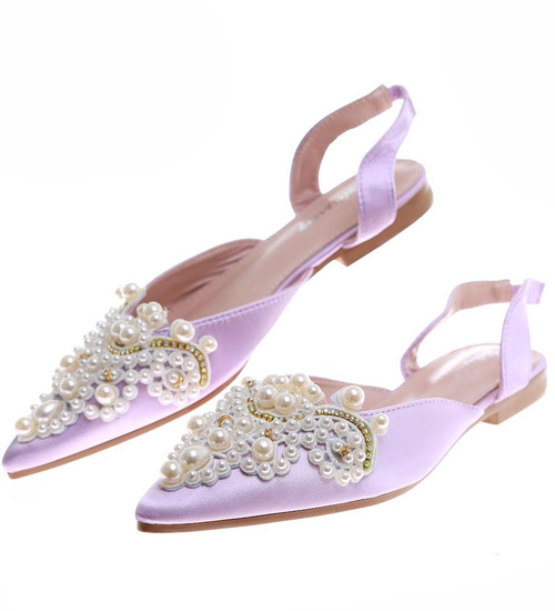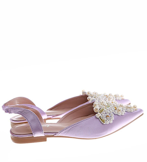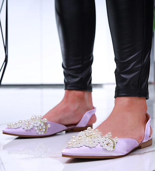 Fioletowe płaskie sandały z perełkami /E5-2 16362 G079/