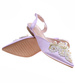 • Fioletowy wierzch sandałów został urozmaicony złotymi srebnymi perełkami.